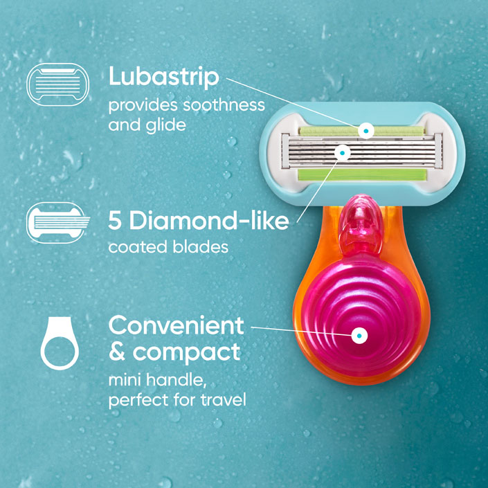 The Extra Smooth Razor is designed with 5 blades for a long-lasting shave and up to 0% shave irritation. The SkinCushion lubricating strip helps to protect your skin from shave irritation. Handle is also compatible with any Venus refill blade cartridge, so you can keep the handle and change the blades for a shave your way. Upgrade your shave routine with the Extra Smooth Venus Razor.